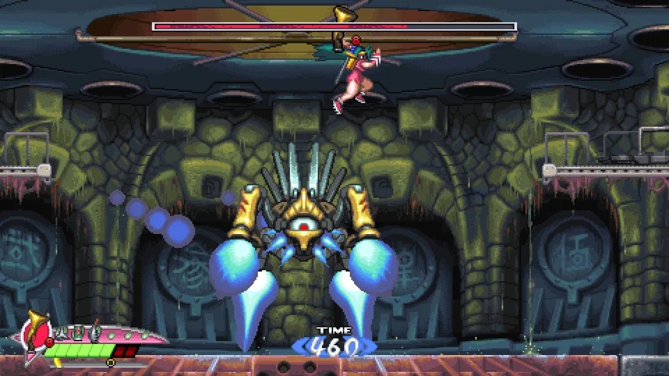 However, due to the enhanced power of the long-range attack chain, coupled with the relatively generous time limit for each level and the absence of an infinite respawn mechanism for the small enemies, players who don’t plan to rush to the top of the leaderboard can adopt a more conservative strategy. By slowly clearing enemies from a distance with the chain, you can safely progress to the boss room. Although this method may not look great, it at least ensures steady progress and is a special tactic left by the creators for players who struggle with action games.
